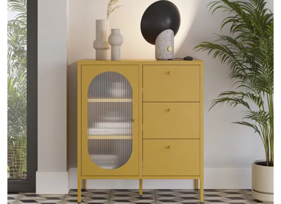 Con su combinación de puerta de cristal estriado y tres cajones, mezcla lo retro con lo industrial y lo convierte en el centro de todas las miradas. Una pieza pensada para quienes no quieren lo de siempre. Sabemos que te encanta innovar. Si este aparador te ha hecho ojitos, no lo dudes y llena tu casa de estilo.