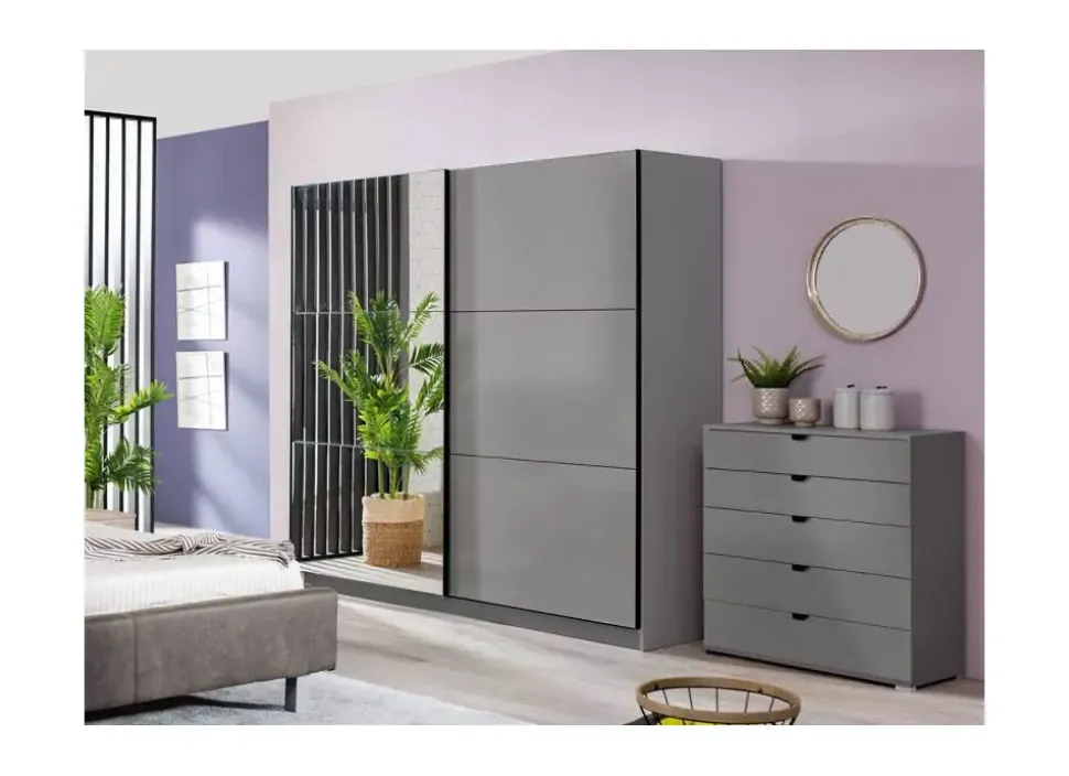 El armario SIERRA compuesto por 2 puertas correderas, una de ellas con espejo y una fantástica distribución interior para el máximo aprovechamiento del espacio.