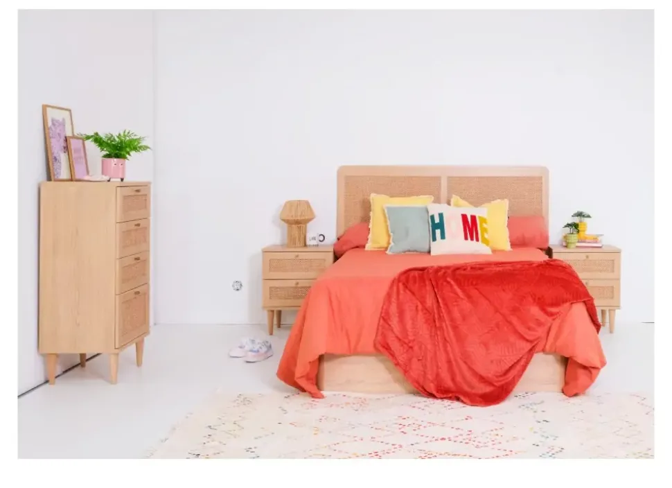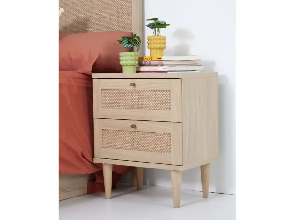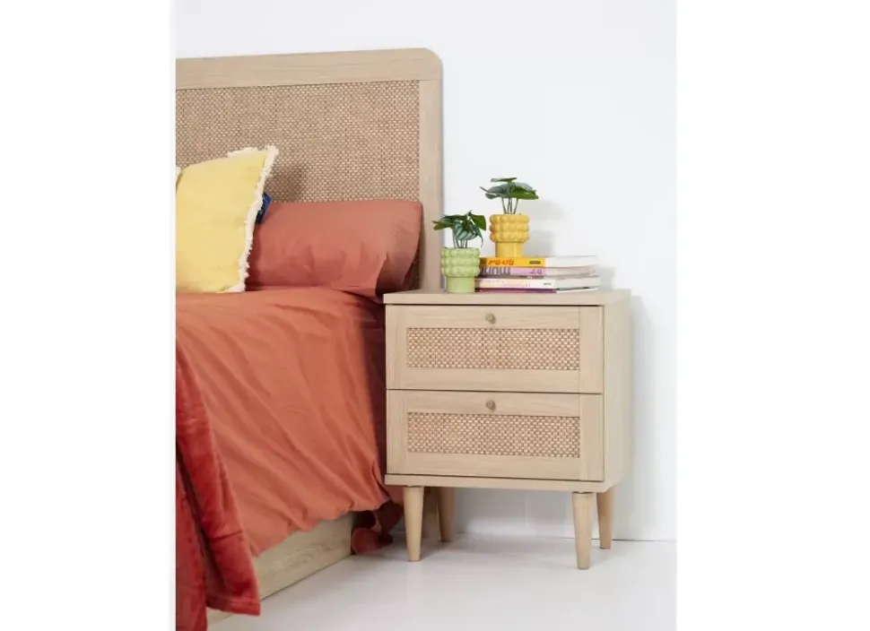 La mesilla CALABRIA combina madera y ratán aportando al conjunto elegancia y estilo a su diseño moderno, desenfadado encaja a la perfección en cualquier ambiente.