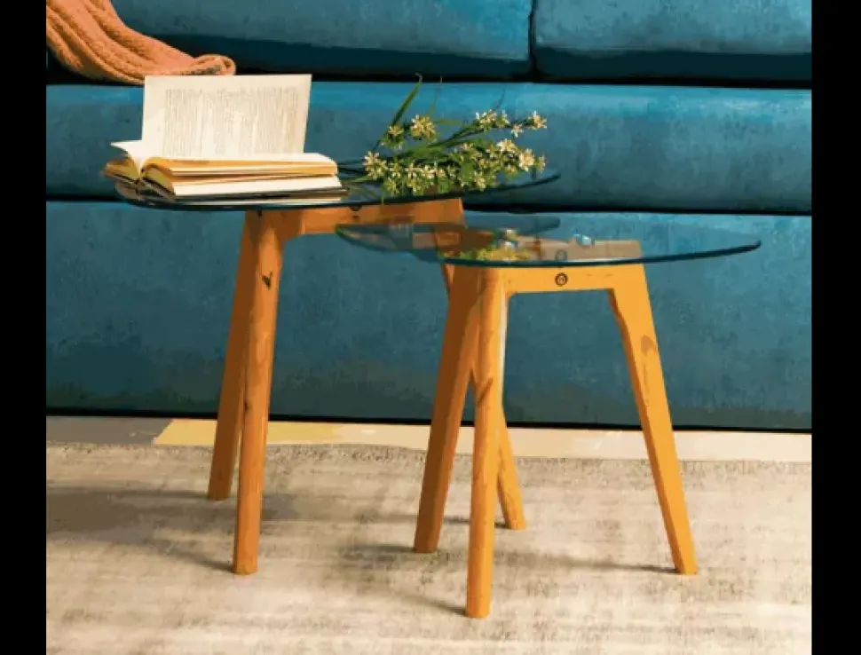 Mesas nido SIDNEY, Conjunto ideal para complementar un gran sofá bien como mesa de centro o como auxiliares, llamativas por su diseño particular al ser un conjunto de 2 mesas irregulares de distinto tamaño.