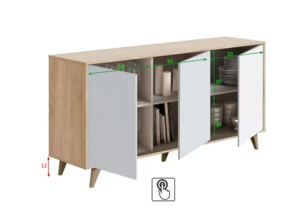 El aparador modelo MILO ofrece un amplio espacio de almacenamiento para tu salón o comedor moderno, las puertas disponen de un cómodo sistema de apertura push up, con expulsores.