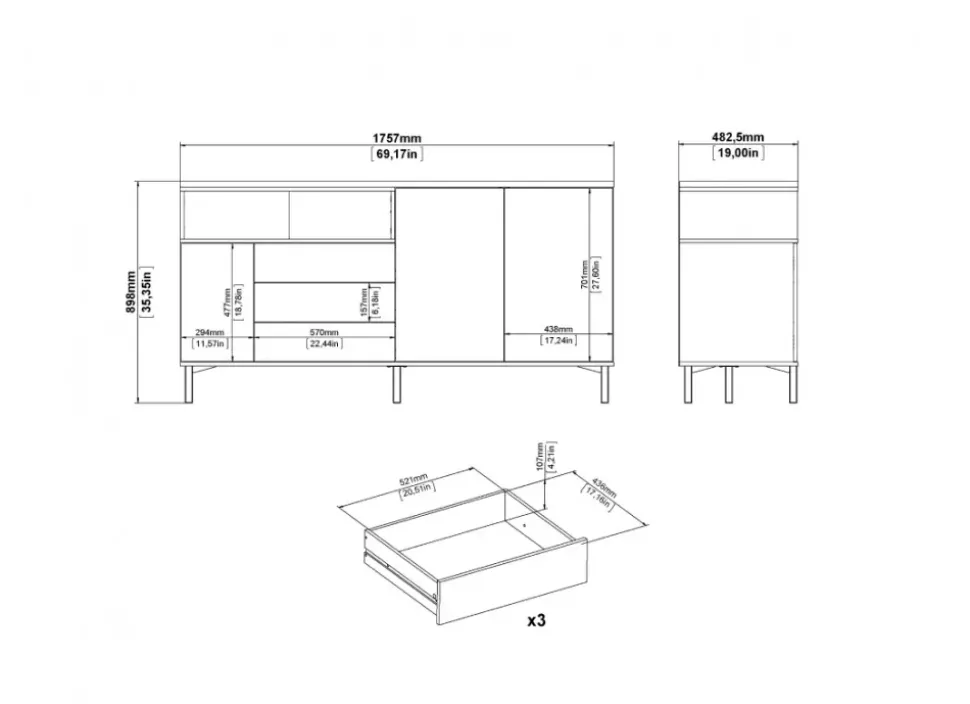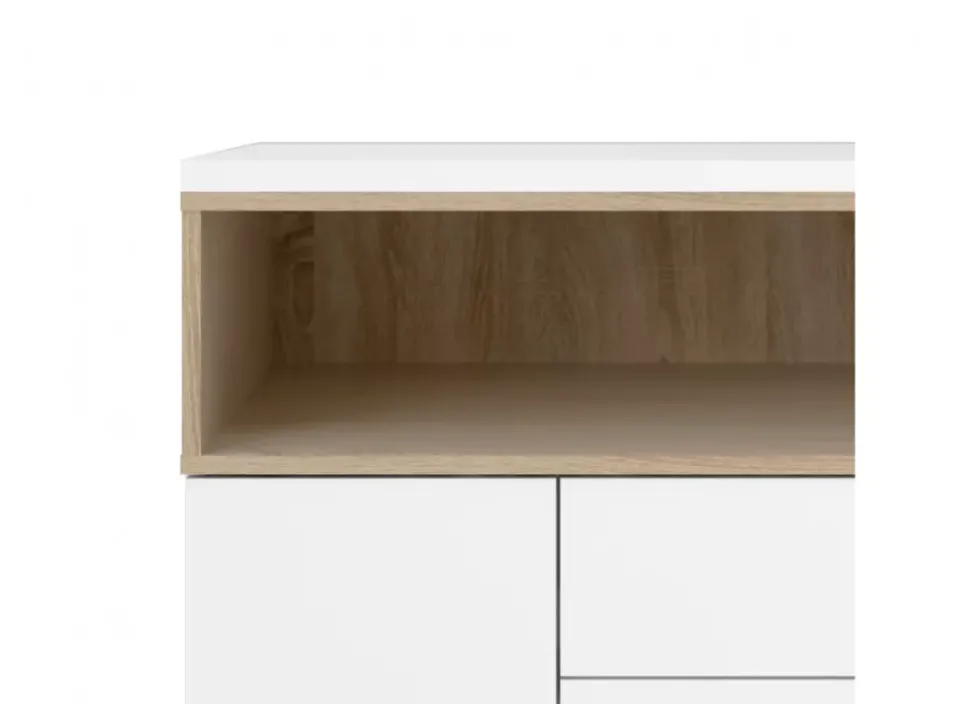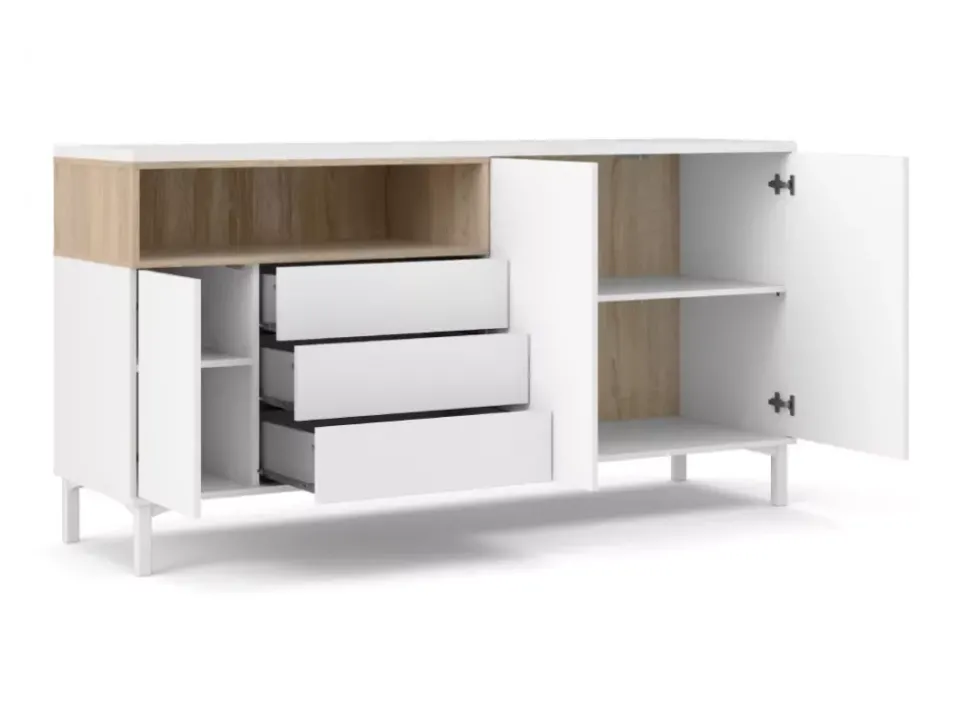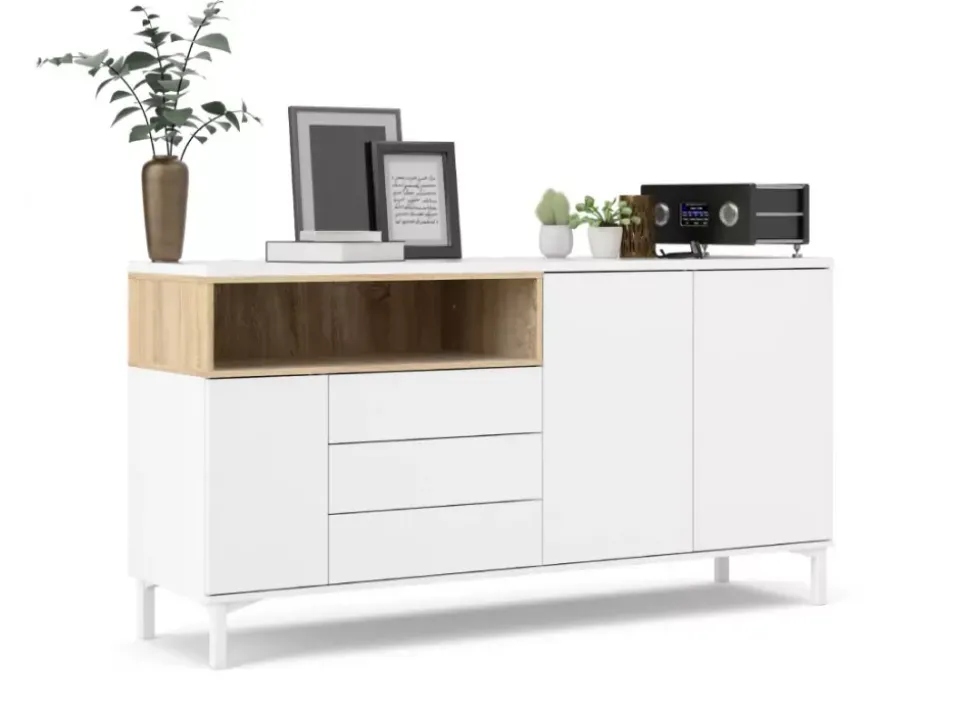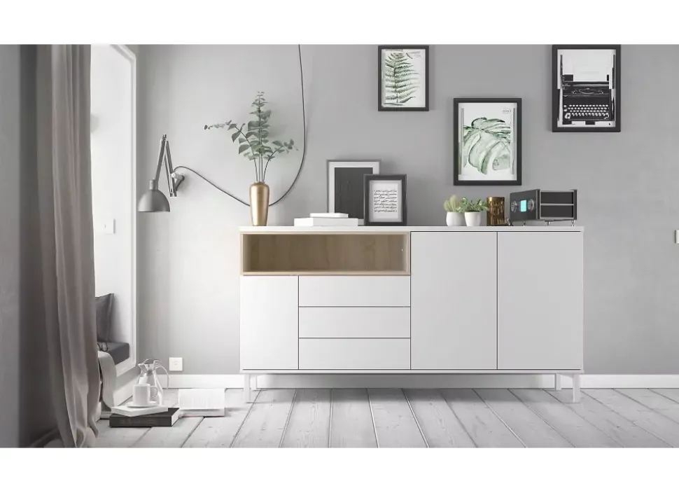 El aparador para salón SUK forma parte de una colección de piezas auxiliares que dará a tu hogar ese toque diferente. Este aparador consta de dos puertas + 3 cajones y un hueco, para un total aprovechamiento del espacio.