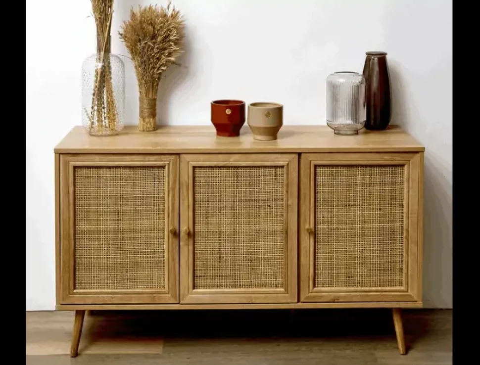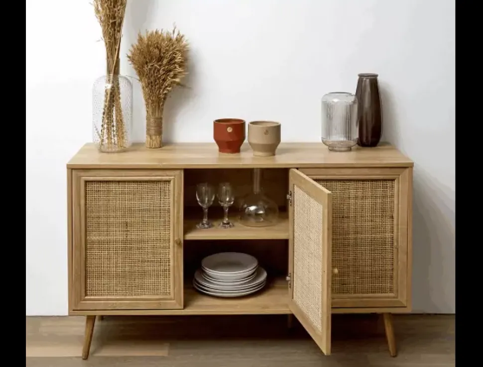 El aparador LOMBOK, te ofrece máxima capacidad y su diseño exótico aportará a tu hogar personalidad, elegancia y calidez.