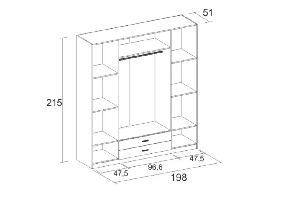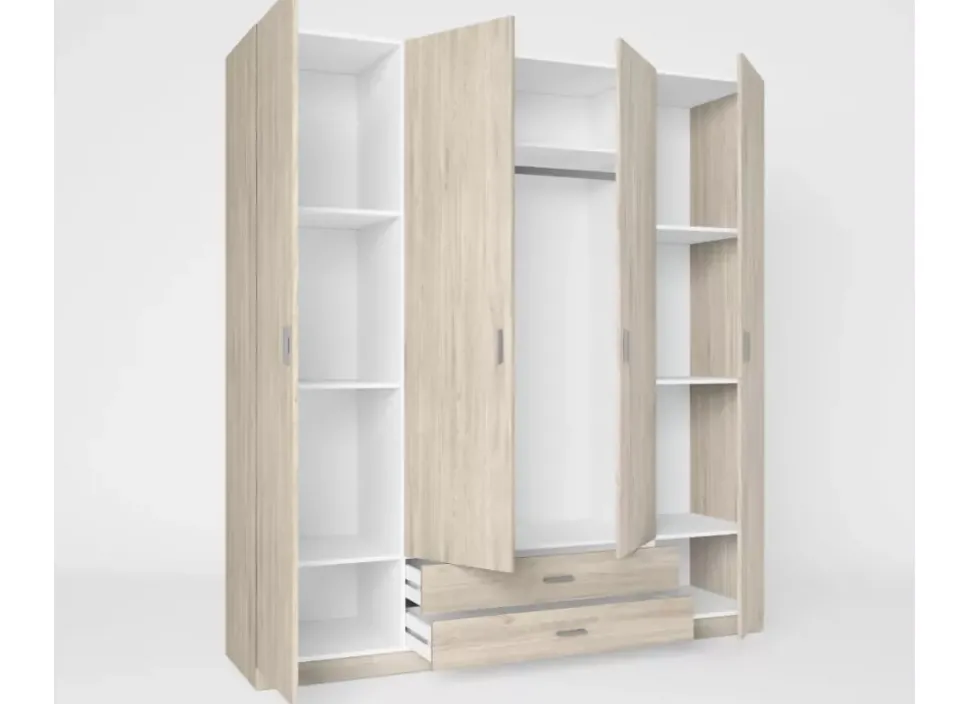 El armario TREVI tiene un diseño moderno y funcional con gran capacidad de almacenaje, y encajará a la perfección en cualquier dormitorio ocupando el mínimo espacio.
