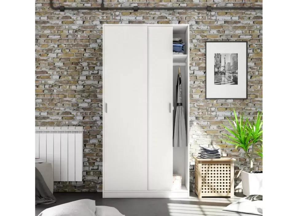 El armario de dos puertas correderas MICKEY es una gran solución de almacenamiento y además es una pieza de diseño impecable para decorar tu hogar. Sin duda un armario útil y bonito a precio fácil.