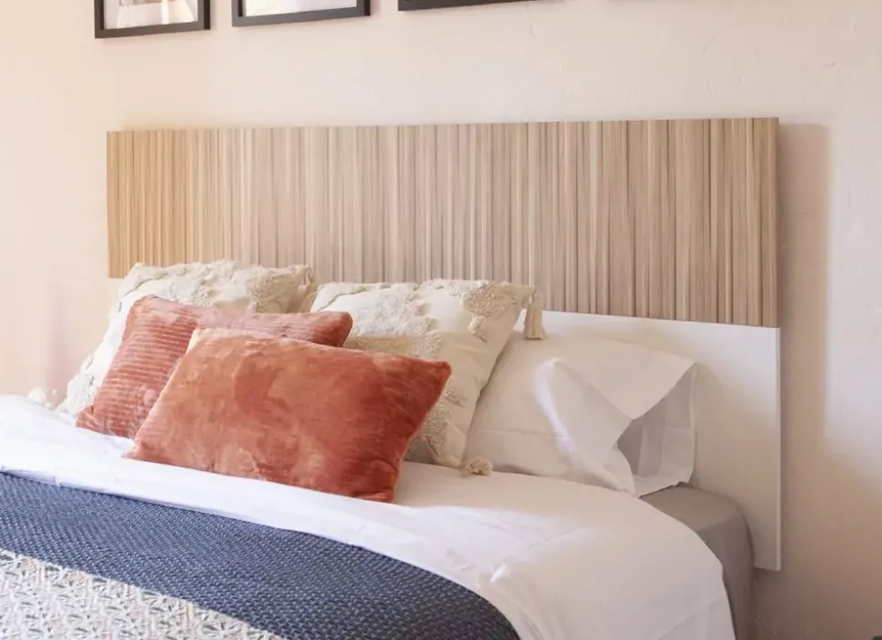 El Dormitorio SAMANTA te ofrece un diseño de primer nivel a un precio muy asequible, un elegante estilo nórdico complementado con un original y novedoso color, el Natur que tiene efecto rayado imitando las tablas de madera natural.