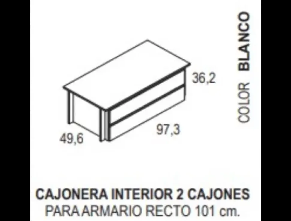 – 2 cajones: 97,3 x 49,6 x 36.2 cm alto.