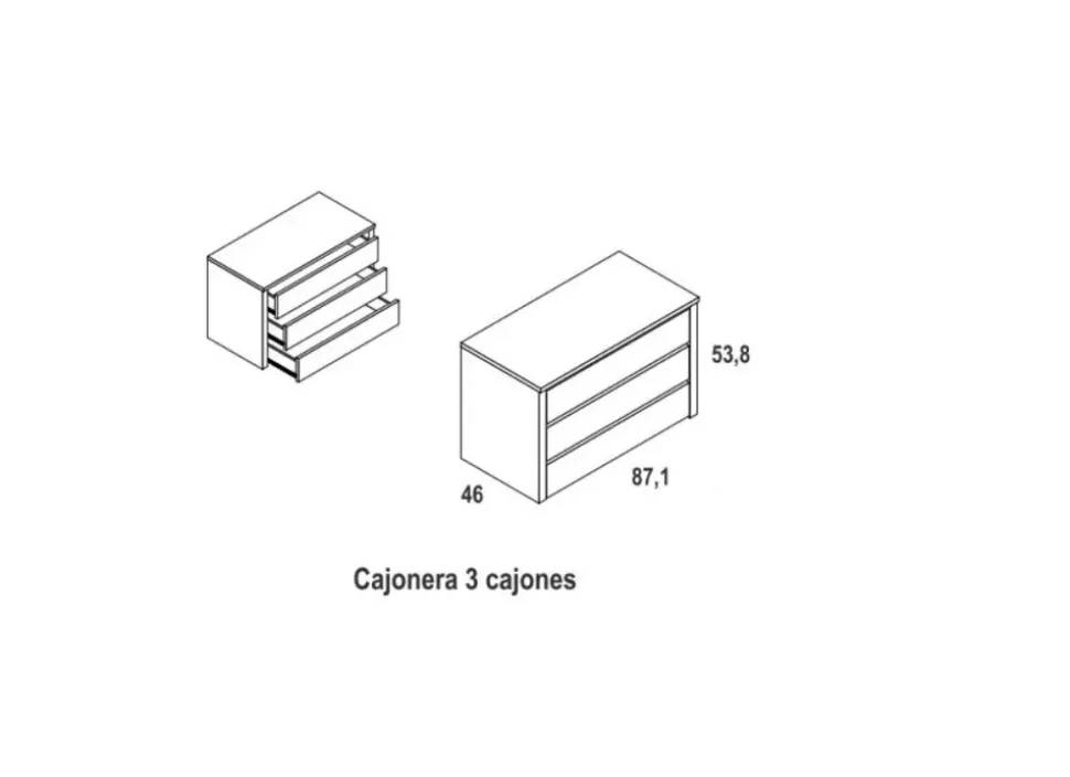 Cajonera de 3 cajones: 87,1 x 46 x 53,8 cm de alto.