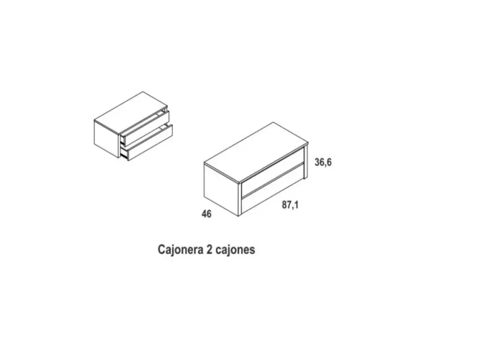 Cajonera de 2 cajones: 87,1 x 46 x 36,6 cm de alto.