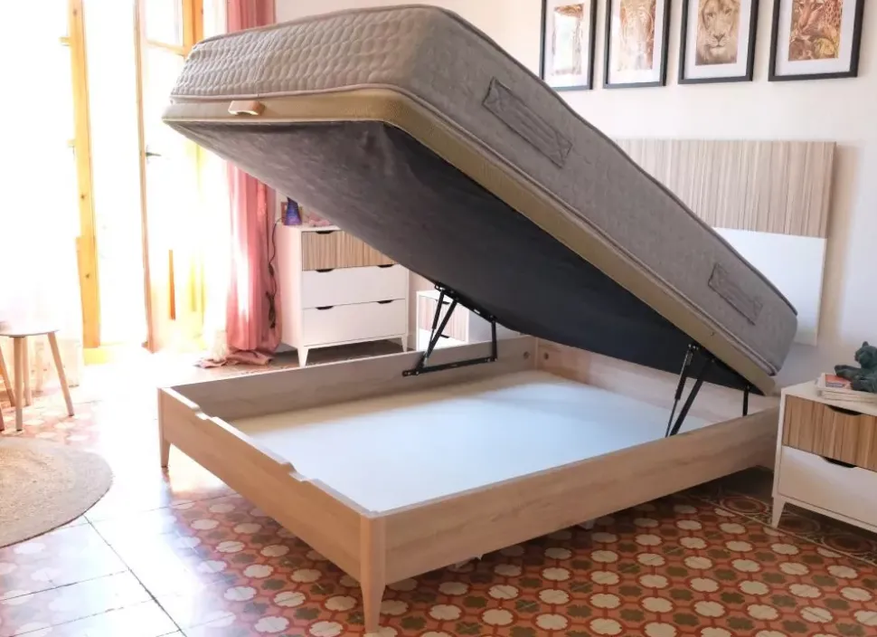 Canapé abatible VERSALLES, mejora tu descanso y te aporta un armario más donde guardar todas aquellas prendas de fuera de temporada que te estorban en tu armario principal.