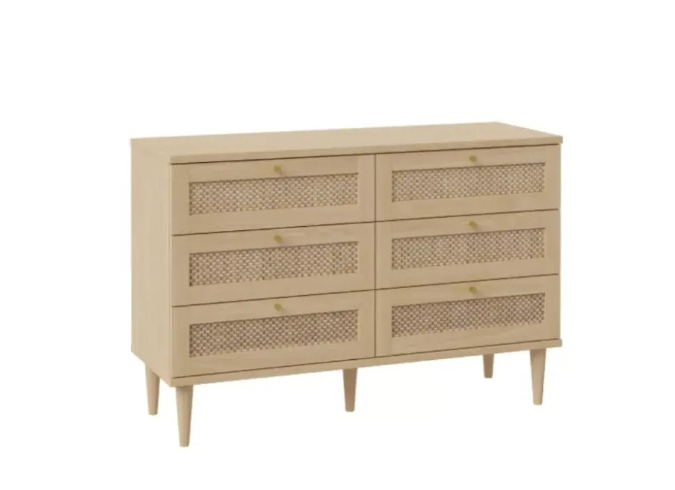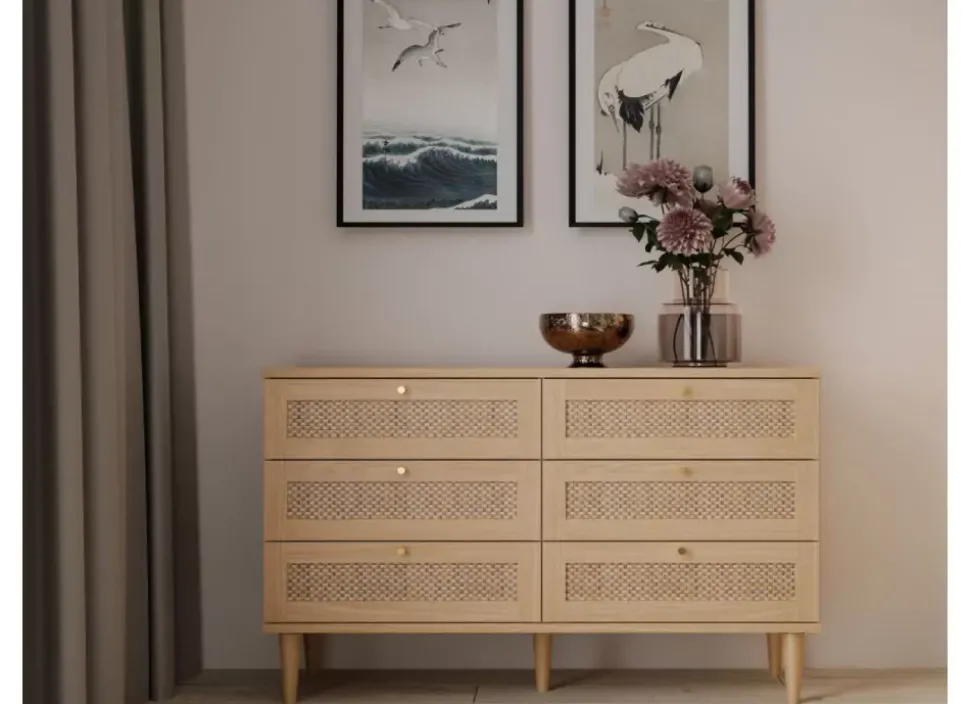 La cómoda CALABRIA combina madera y ratán aportando al conjunto elegancia y estilo a su diseño moderno, desenfadado encaja a la perfección en cualquier ambiente.