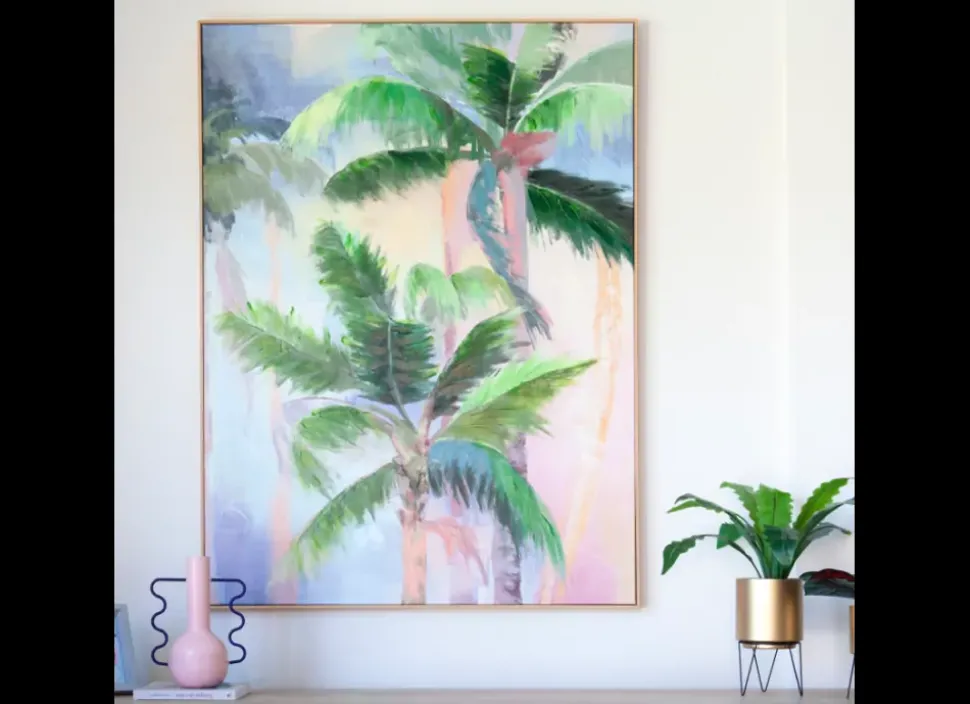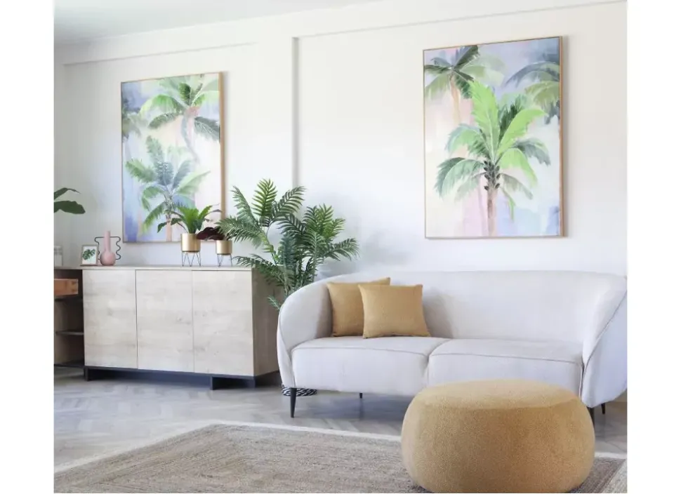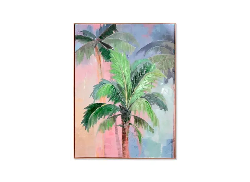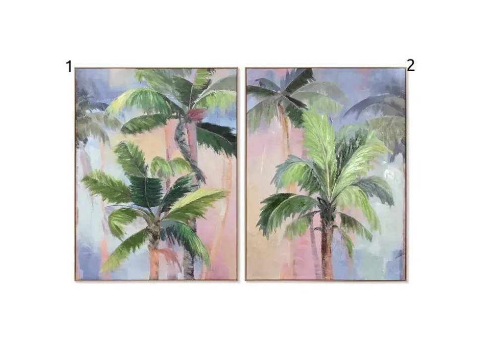 Se enviará un sólo cuadro de palmeras (uno de los dos lienzos de la foto numerada con 1 o 2). Elige tu preferencia (1 o 2) en la casilla «personalización» y te confirmaremos si tenemos disponibilidad de ese modelo, antes de enviártelo.