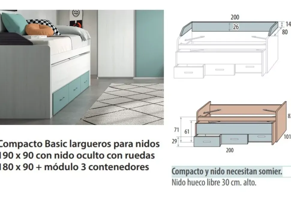 – COMPACTO NIDO : 200 ó 210 x 101 ó 116 x 97,6 cm de altura.