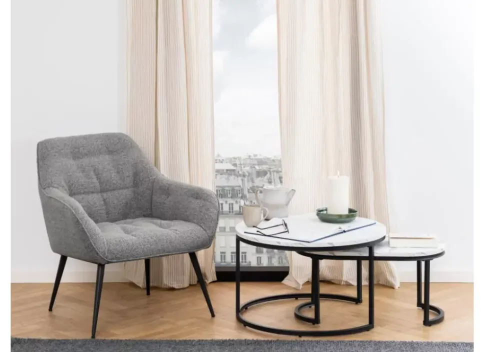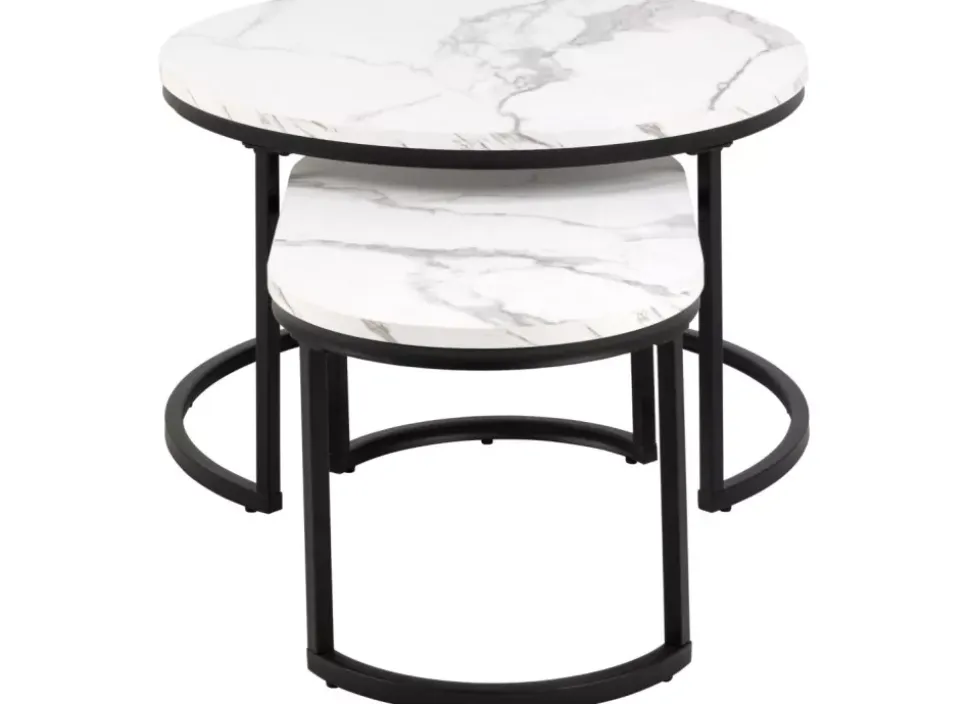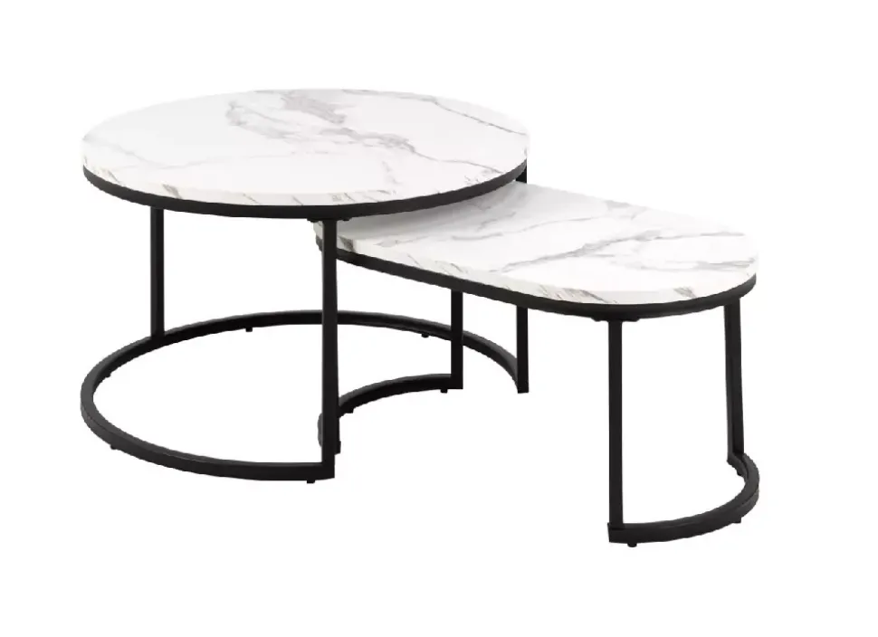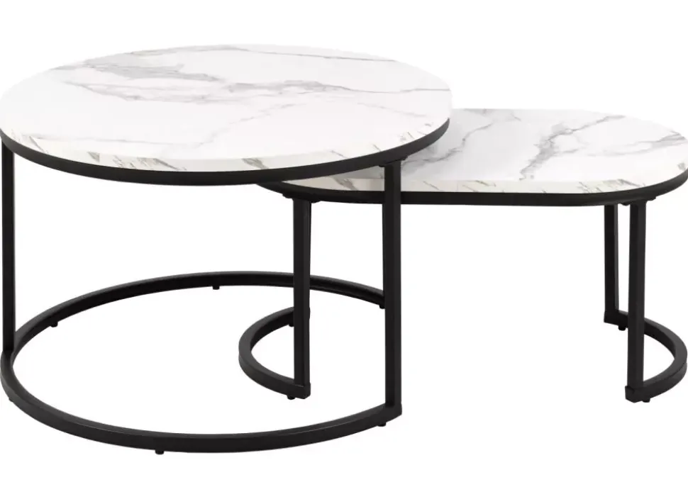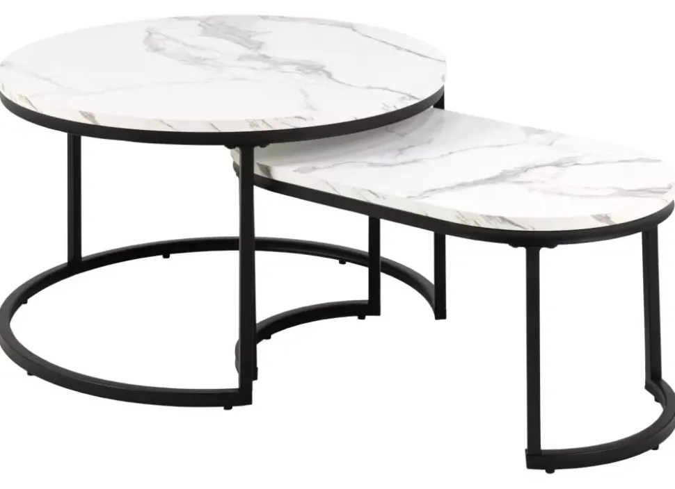 Este juego de mesas de centro MIRO es puro flow, ¡se ve brutal tanto si las juntas como si las dejas separadas! El tablero de mármol blanco le da un toque de lujo que no te esperas en el día a día, y el marco de metal negro le da ese rollo sofisticado que se lleva. Lo mejor es que una mesa es redonda y la otra tiene forma de píldora, ¡eso lo hace aún más guay! Un combo que rompe esquemas y le da toda la personalidad al espacio.