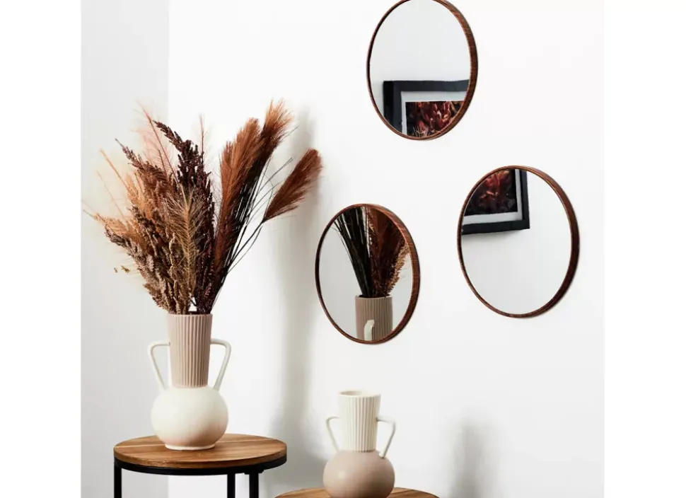 El juego de 3 espejos FORTUNE tiene un estilo rudo y full flow. Cada espejo tiene un marco que simula madera, pero no te dejes engañar, tiene ese toque moderno y fresco que lo hace único. Los tres están diseñados para que se complementen, como un trío de impacto. ¡Una explosión de estilo y elegancia en tres reflejos!