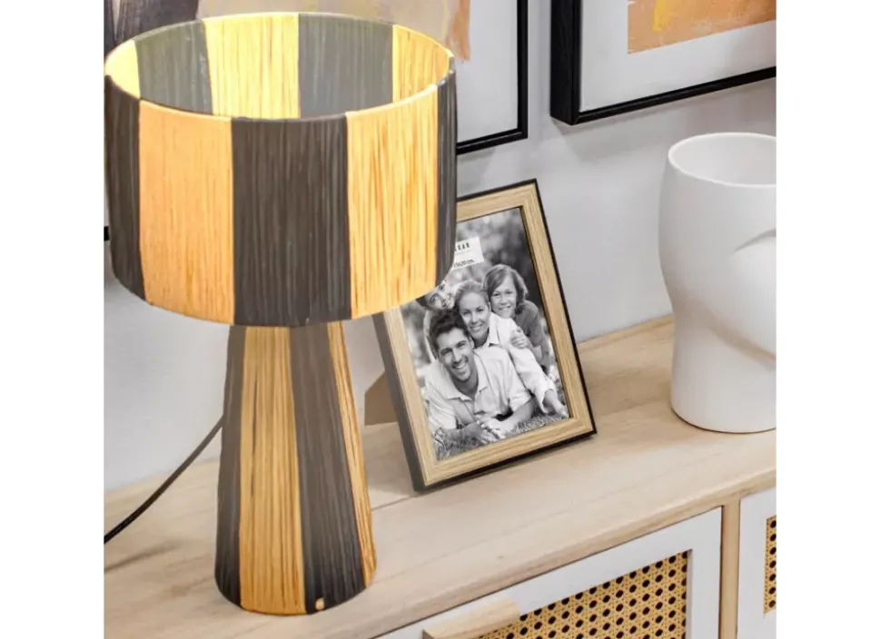 La lámpara de rafia ROPE es el equilibrio perfecto entre artesanía y diseño contemporáneo. Su estructura de sobremesa, elaborada con rafia en tonos negro y natural, aporta calidez y sofisticación a cualquier espacio, creando un ambiente acogedor con un toque de distinción.
