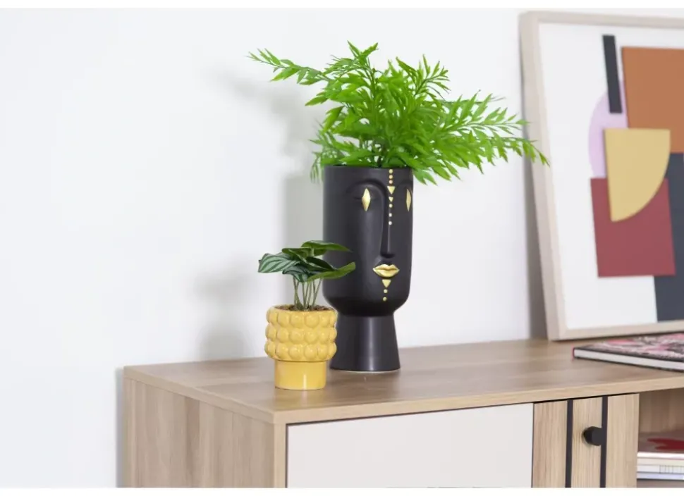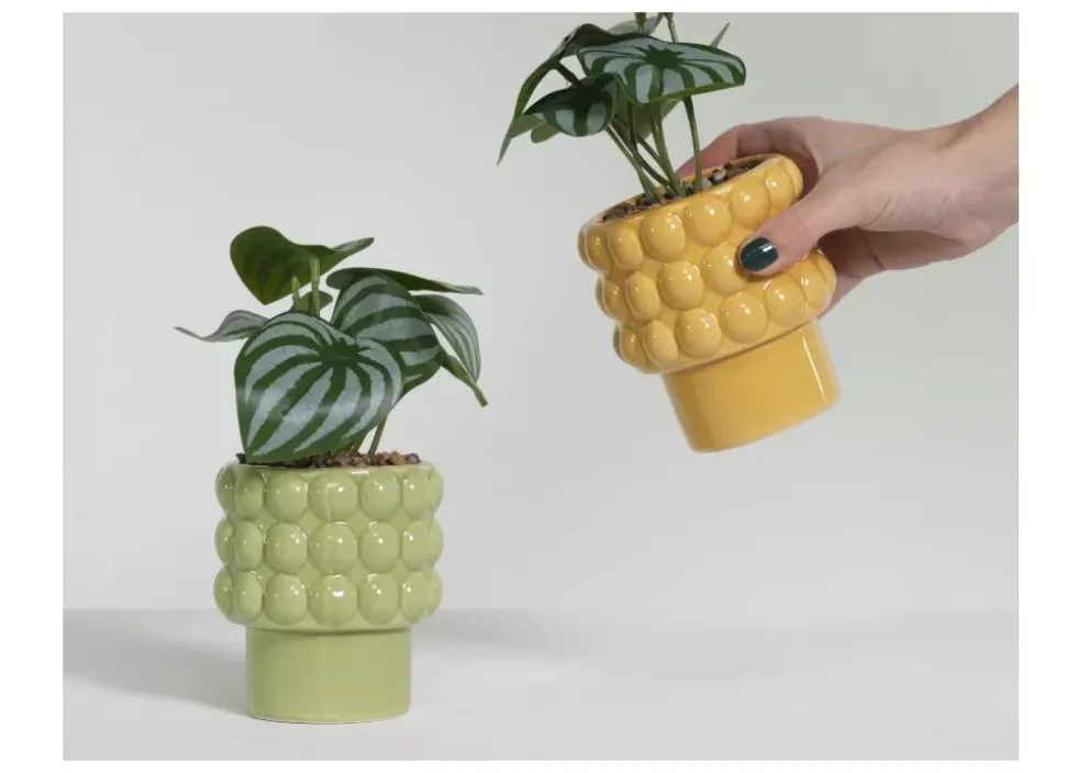 Incluye planta artificial y macetero.