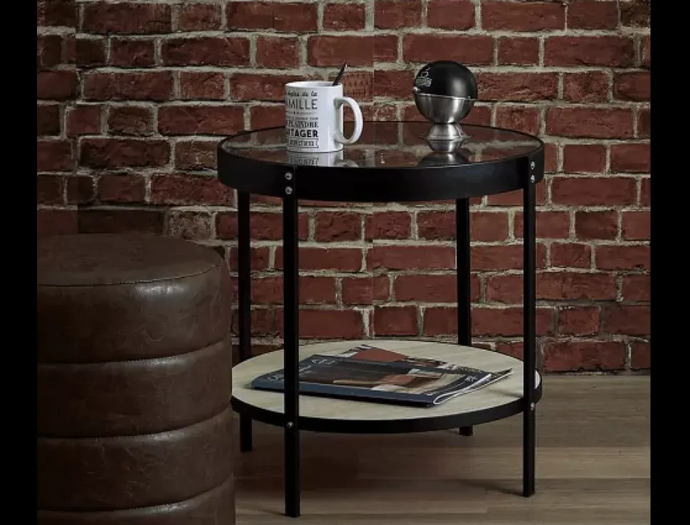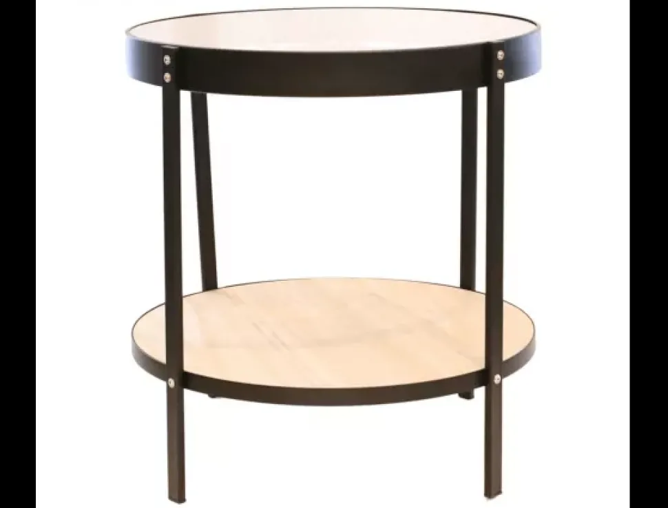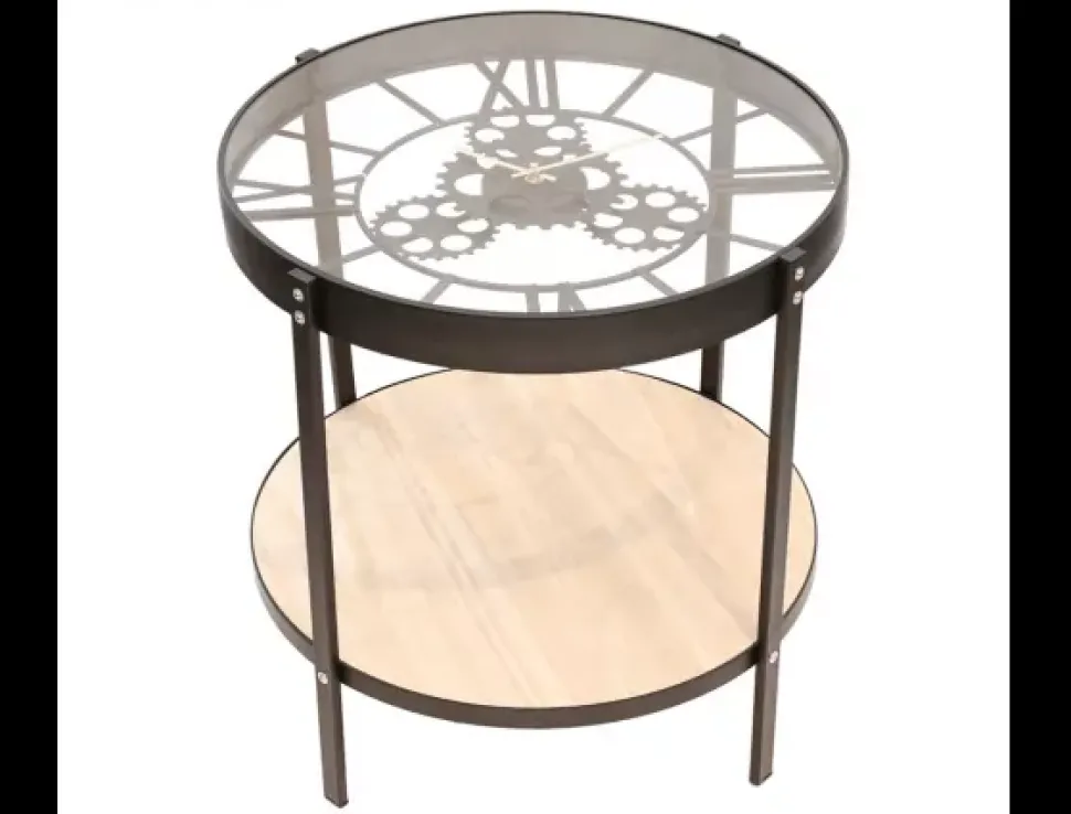 La mesa HOLMES auxiliar redonda de metal con cristal y reloj en su interior. Su acabado es perfecto y combinable con cualquier tipo de salón, hacen practica a esta mesa para caber en cualquier espacio.