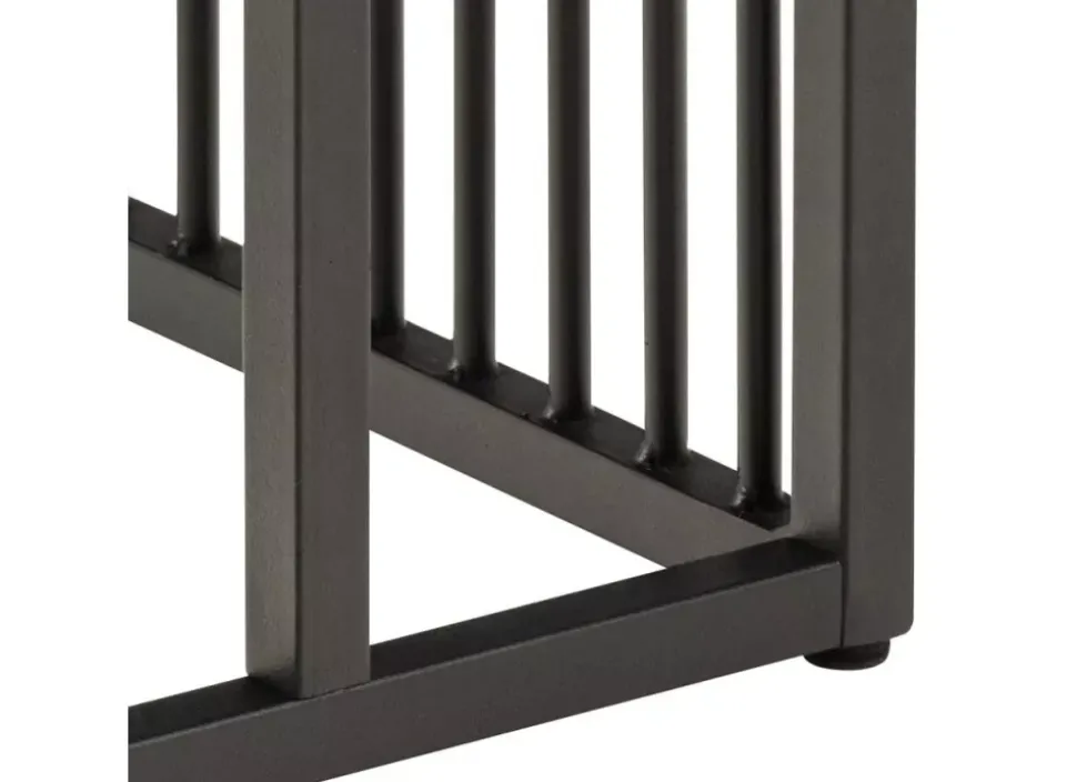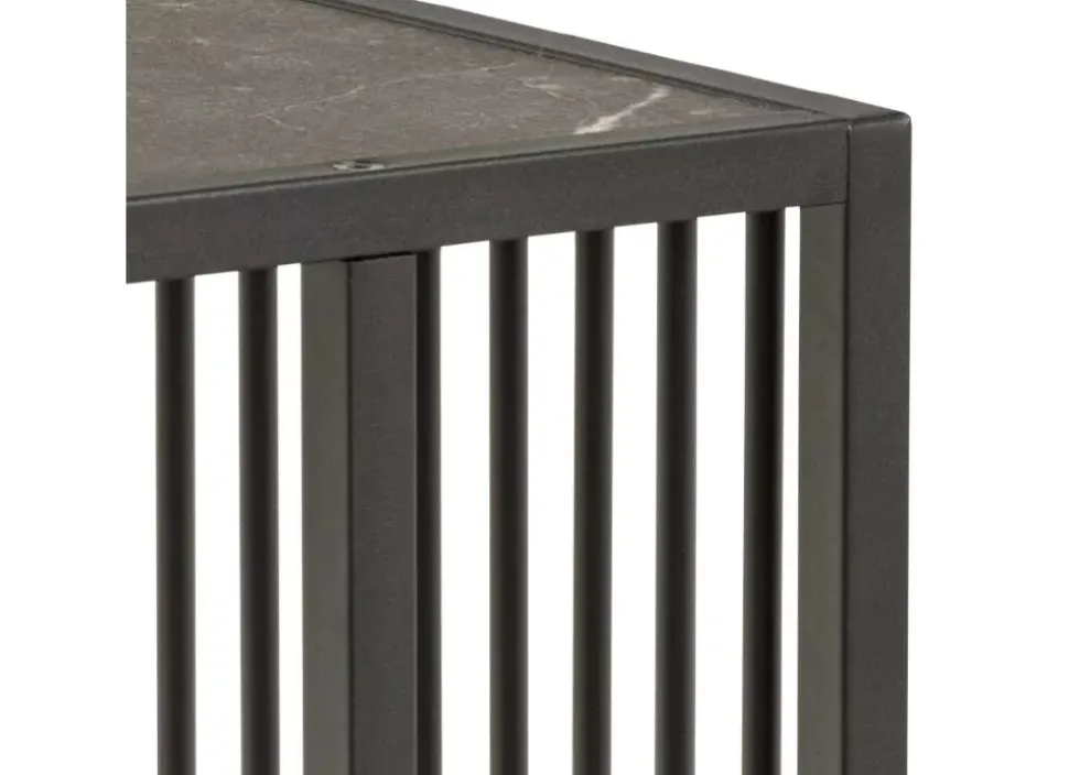 ¿Una mesa auxiliar normal? ¡Jamás! Esta pieza es todo lo contrario: es la manifestación de tu estilo sin límites. El marco de metal negro con listones metálicos verticales a los lados es puro poder, mientras que el tablero de mármol negro le da ese toque de lujo irreverente que nadie espera. ¿Para qué? Para que puedas poner lo que te dé la gana, desde tu jarrón más atrevido hasta tu ordenador mientras conquistas el sofá. Si buscas algo que no pase desapercibido y sea tan audaz como tú, esta mesa es lo que necesitas.