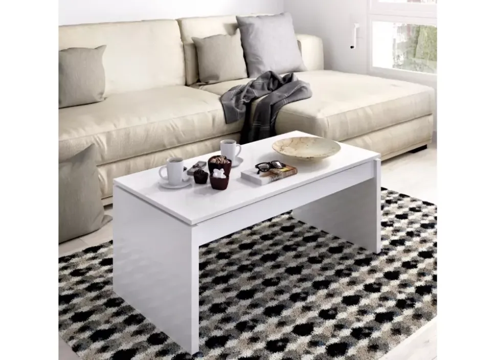 Mesa de centro DEYSI, cuenta con un sistema elevable para poder almacenar objetos en su interior. Con diseño moderno y minimalista, ideal para todo tipo de decoración y estilo por su acabado natural o blanco brillo.