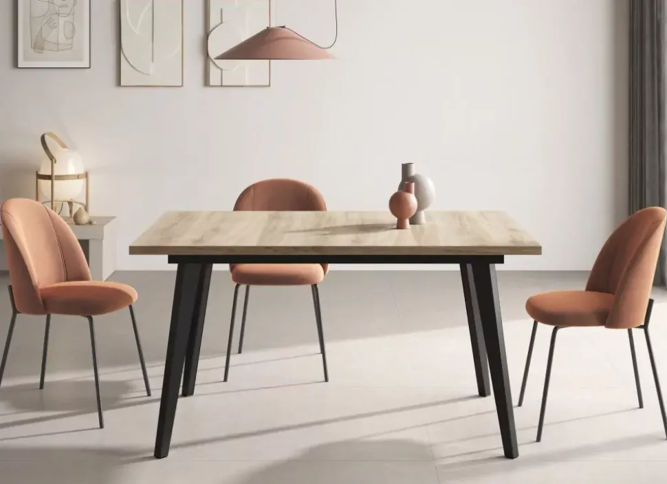 La mesa de rectangular CANTABRICO ideal para familias de 4 a 6 personas que ocasionalmente compartan mesa con amigos o familiares y no quieran sacrificar del salón mas espacio del imprescindible.