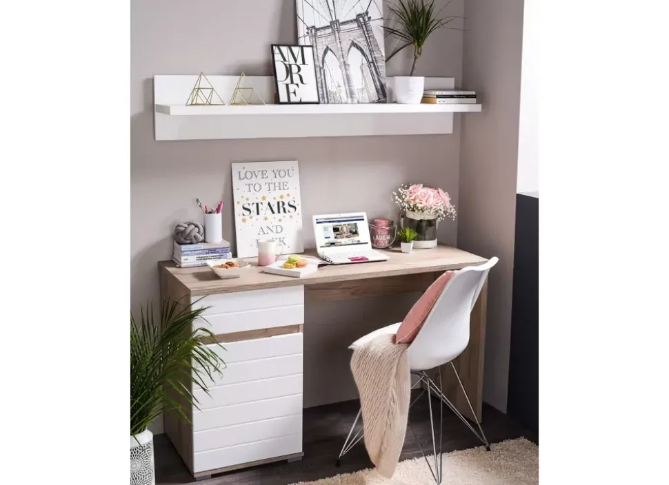 La mesa de estudio ELAN dispone de espacio para almacenaje y podrá dar servicio tanto en una habitación juvenil como en un despacho.