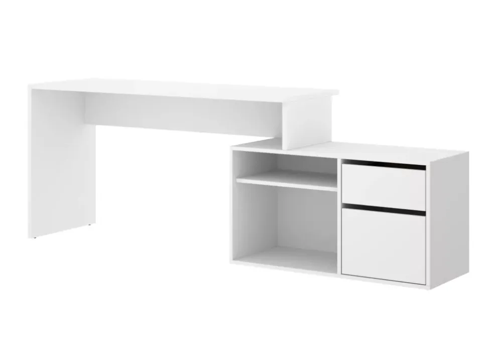 La mesa de estudio en ángulo STUART es muy versátil, tanto para una habitación juvenil como para un despacho de trabajo. Cuenta con un práctico lateral con cajón, puerta y estante de almacenaje, perfecto para colocar donde más cómodo resulte. Además, al estar diseñada en ángulo es perfecta para espacios reducidos.