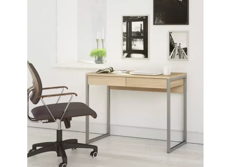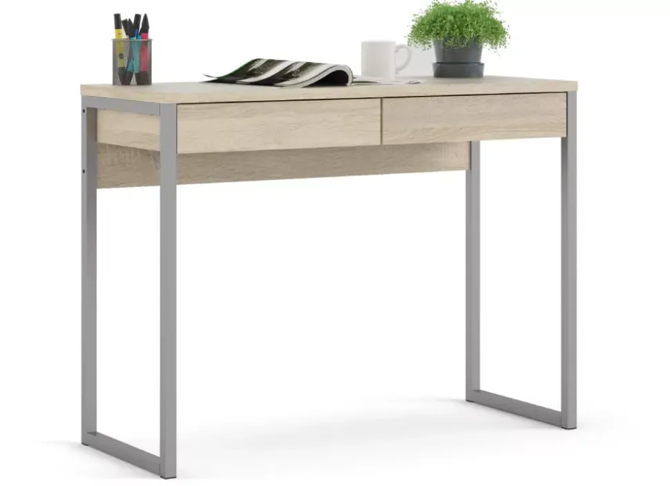 La mesa de estudio LEX es justo lo que necesitas si tienes poco espacio pero quieres sacarle partido para estudiar, trabajar, leer. Además sus dos cajones te ayudarán a tener siempre a mano apuntes, libretas y cualquier material de escritorio.
