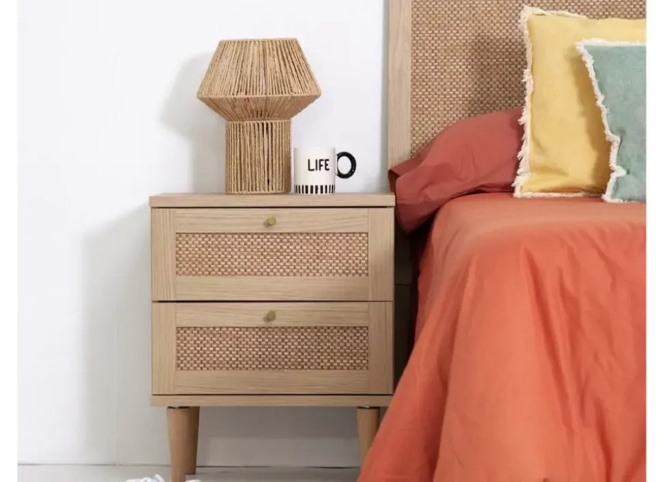 La mesilla CALABRIA combina madera y ratán aportando al conjunto elegancia y estilo a su diseño moderno, desenfadado encaja a la perfección en cualquier ambiente.