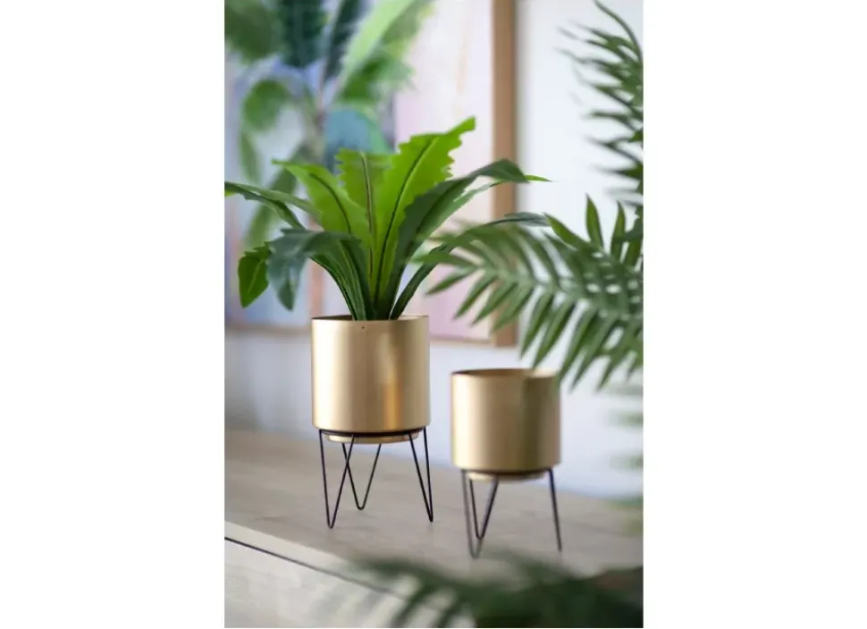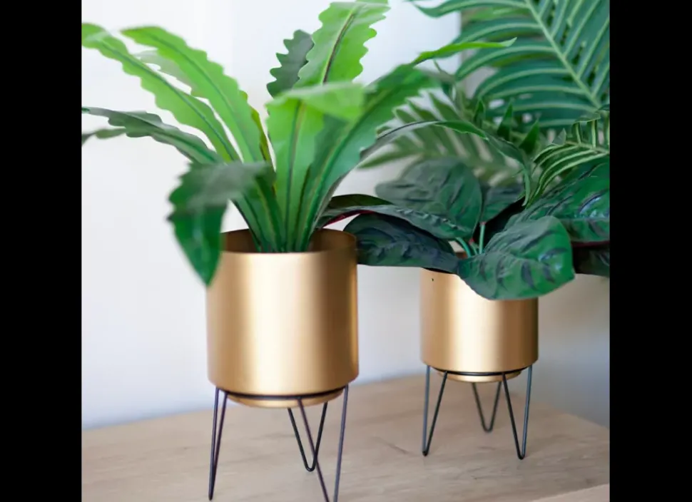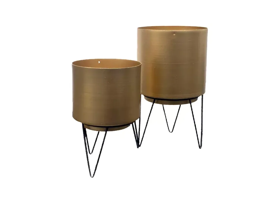 El pack de maceteros ARENDAL le otorga a tu mesa un estilo moderno y elegante gracias a su color dorado y sus patas en acabado de metal negro.