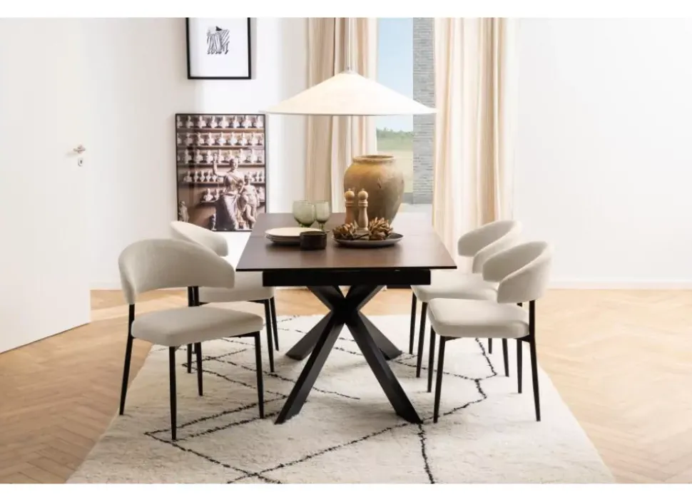 ¡Dale un toque chic a tu comedor con esta silla súper elegante! Tiene un respaldo en forma de media luna que la hace única, y su funda en color marrón grisáceo le da un toque muy cool. Además, el asiento redondeado no solo queda de 10, sino que también es súper cómodo para que disfrutes, desde la comida hasta el postre.