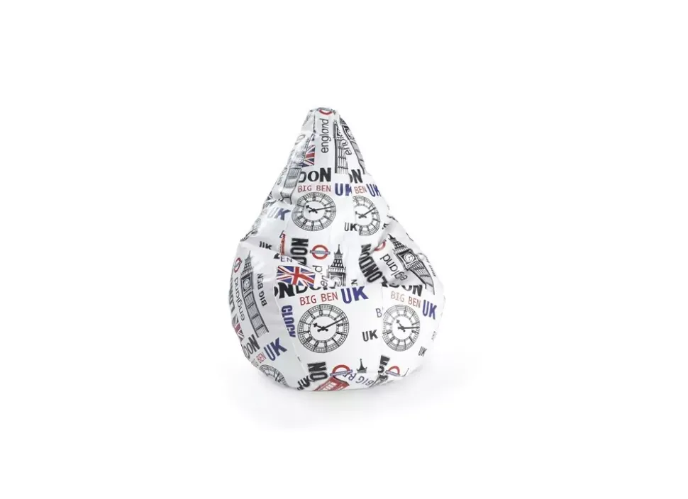 El puff pera KINGDOM lo traemos tapizado en polipiel con alegres motivos londinenses Es un auxiliar perfecto para dormitorios juveniles, pero también quedará estiloso en tu salón. Siéntate, relájate y disfruta.