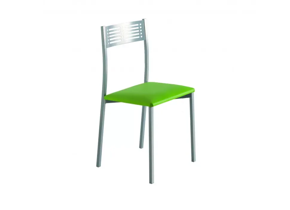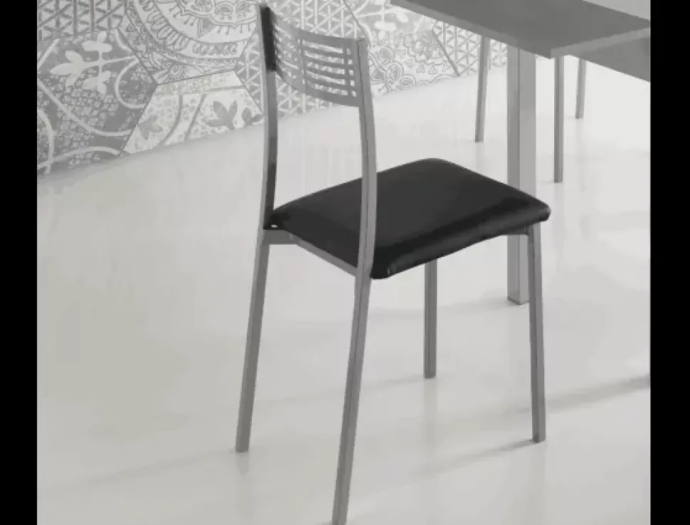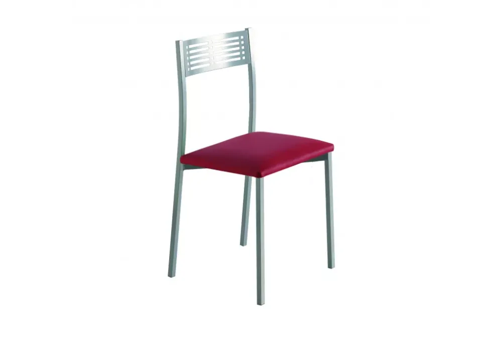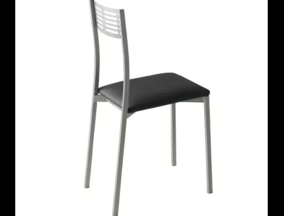 La silla de cocina TOR es una silla fija con un moderno acabado en níquel mate y asiento acolchado en polipiel. Su sentada efecto suave le aporta la máxima comodidad y además podrás elegir entre 4 colores de polipiel.