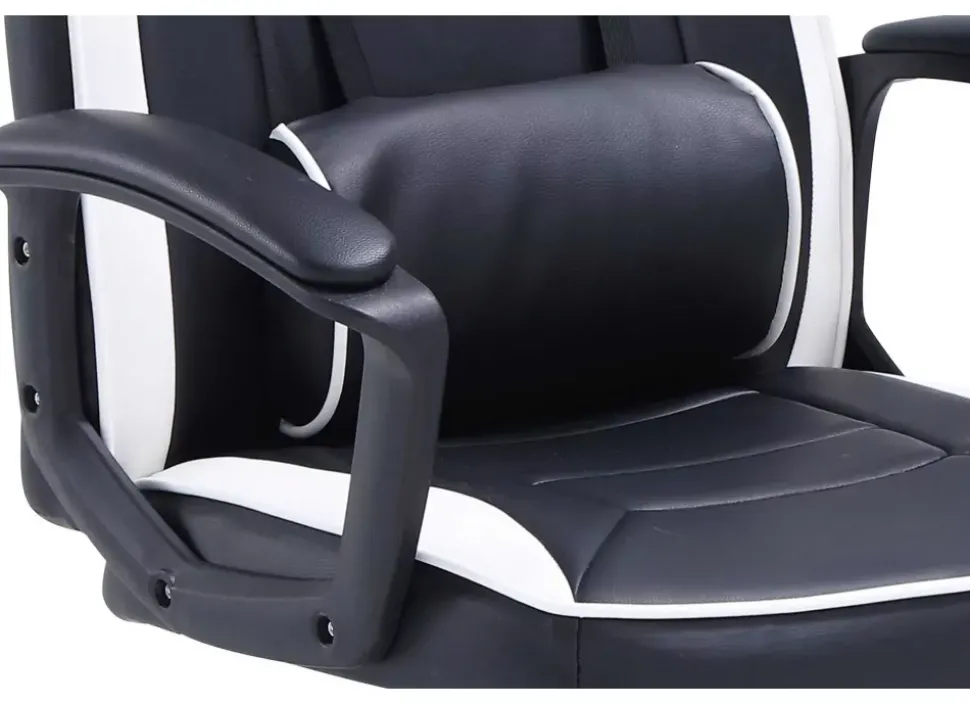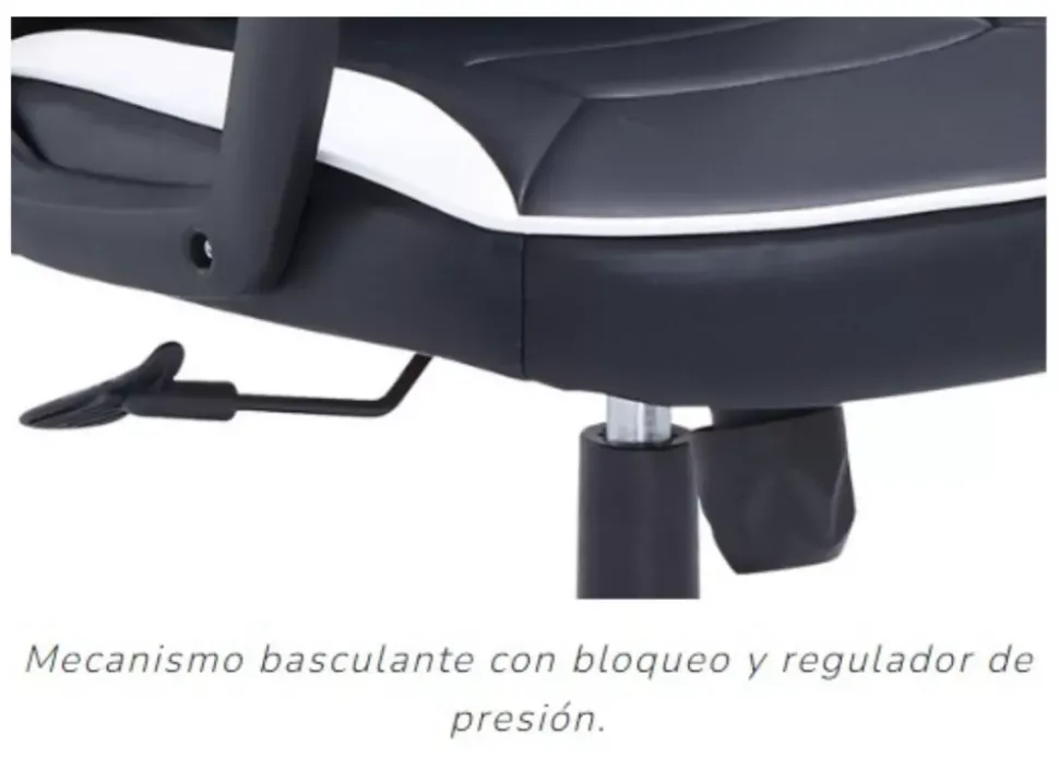 Te encantará nuestro sillón NEO PLAYER por su diseño deportivo, sus ajustadas medidas y todas sus características, giratorio regulable en altura, asiento y respaldo basculante 15º con bloqueo y regulador de presión. brazos tapizados, cojines lumbar regulable, base de ruedas reforzada, tapizado textil negro o símil piel negro y blanco con bordado decorativo en parte superior.