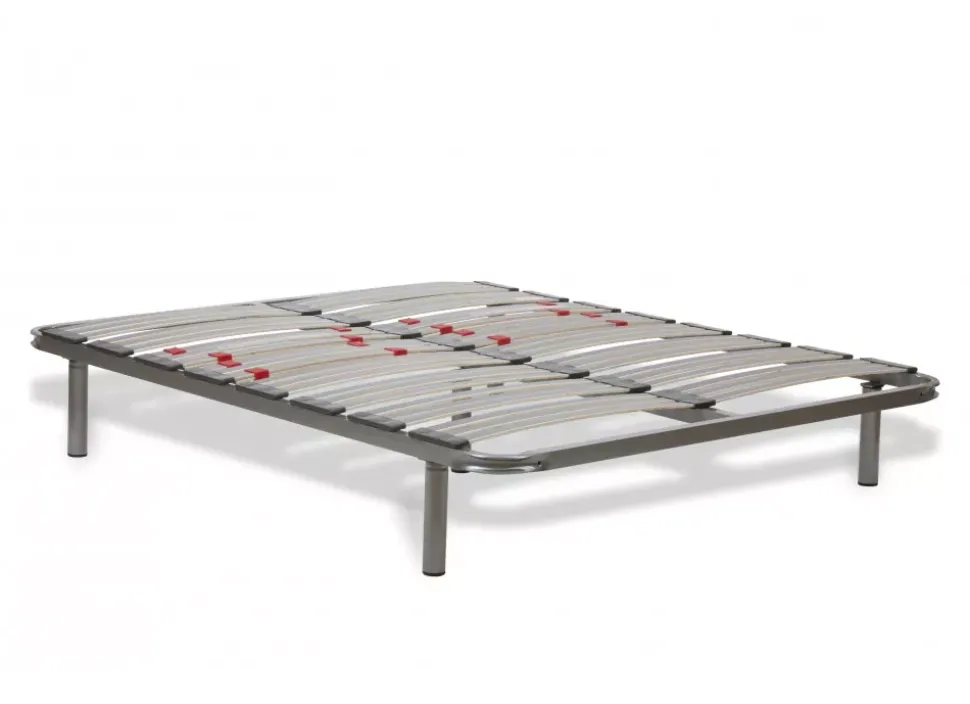 El somier ÍNDICO dispone de un sistema multiláminas, unidas de tres en tres sobre un bastidor de tubo acerado en perfil de 40 x 30 mm. Además de los reguladores de firmeza para mayor comodidad y adaptación en zona lumbar.