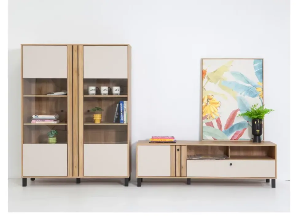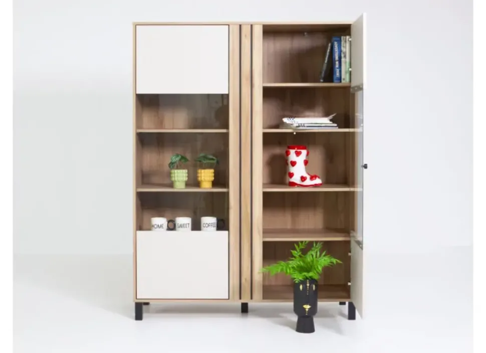 La vitrina ARNEY forma parte de una colección de muebles de salón que te permitirá combinarlos a tu gusto y crear ese ambiente minimalista y desenfadado que a todos nos gustaría disfrutar en casa.