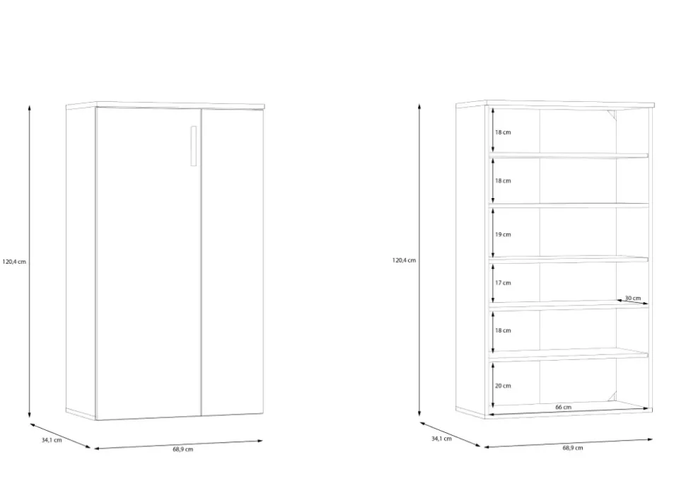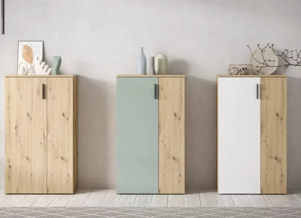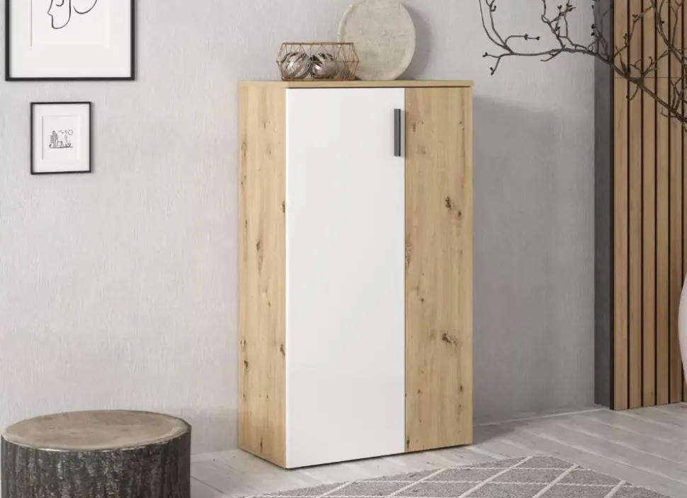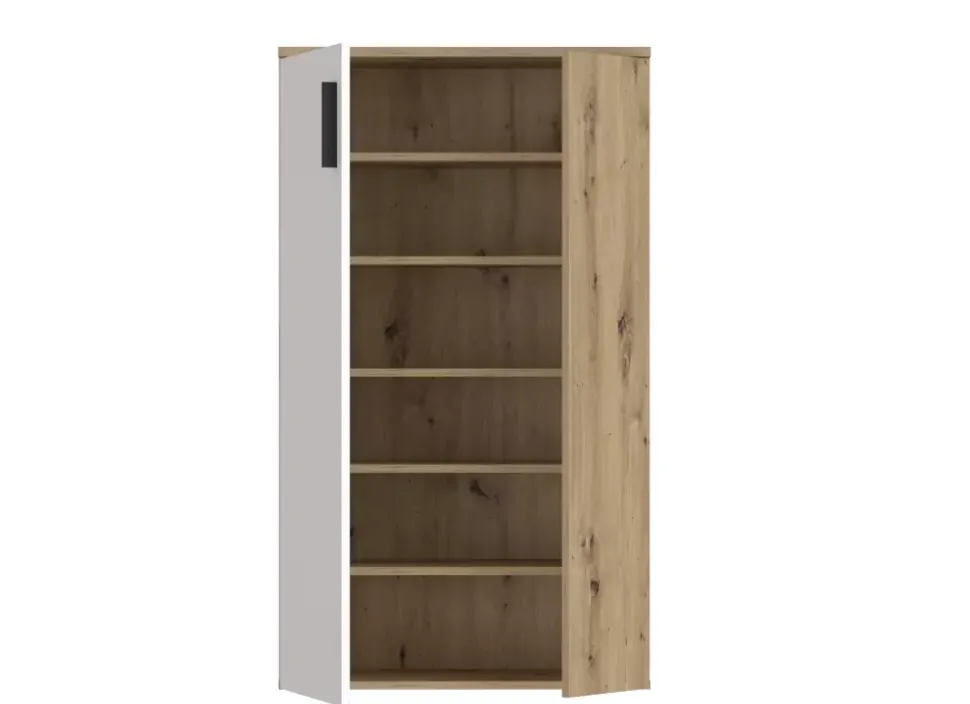 El zapatero SINTRA de 2 puertas, tiene 5 estantes interiores que te permitirán tener todos tus zapatos en orden y además gracias a su elegante y original diseño destacará en cualquier rincón de tu casa.