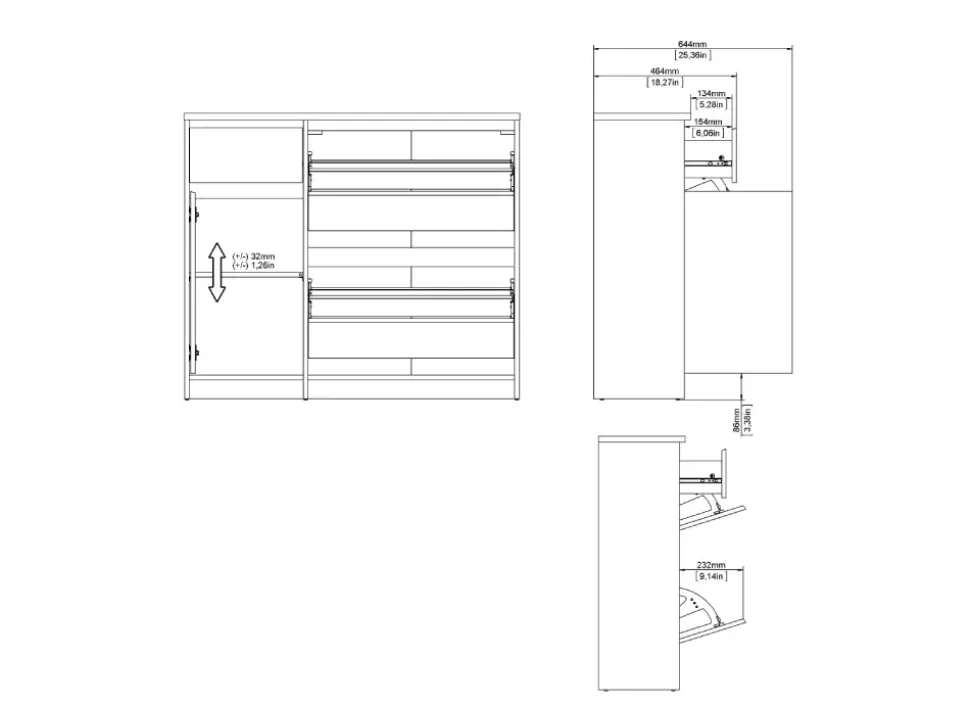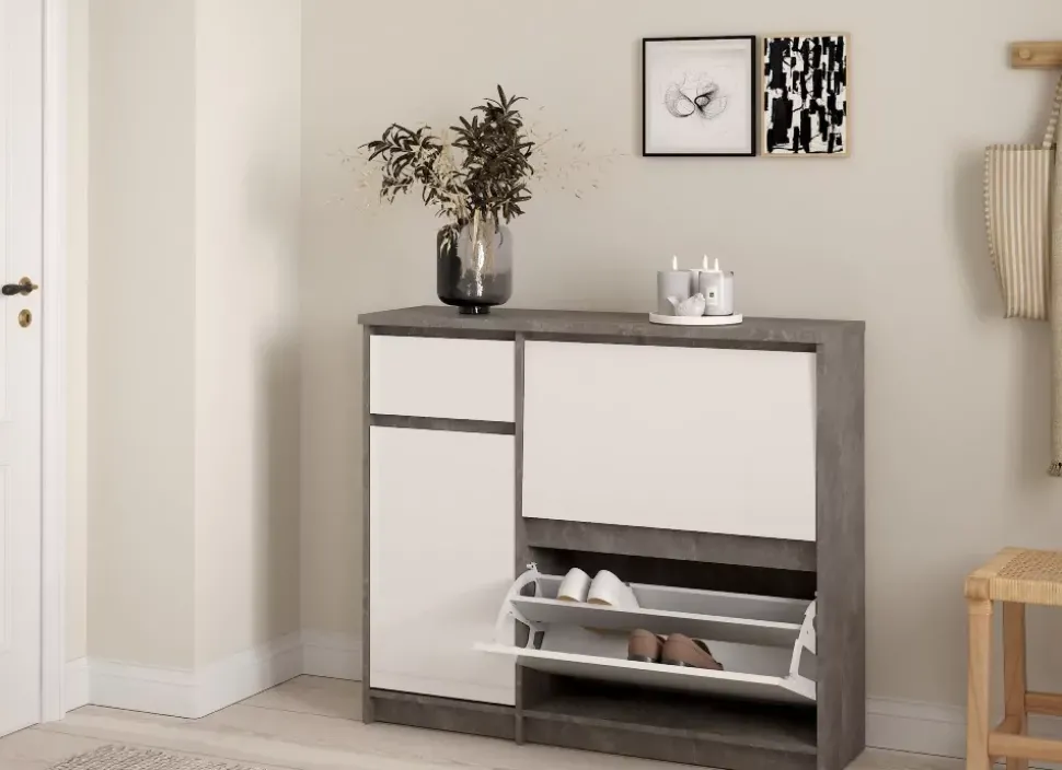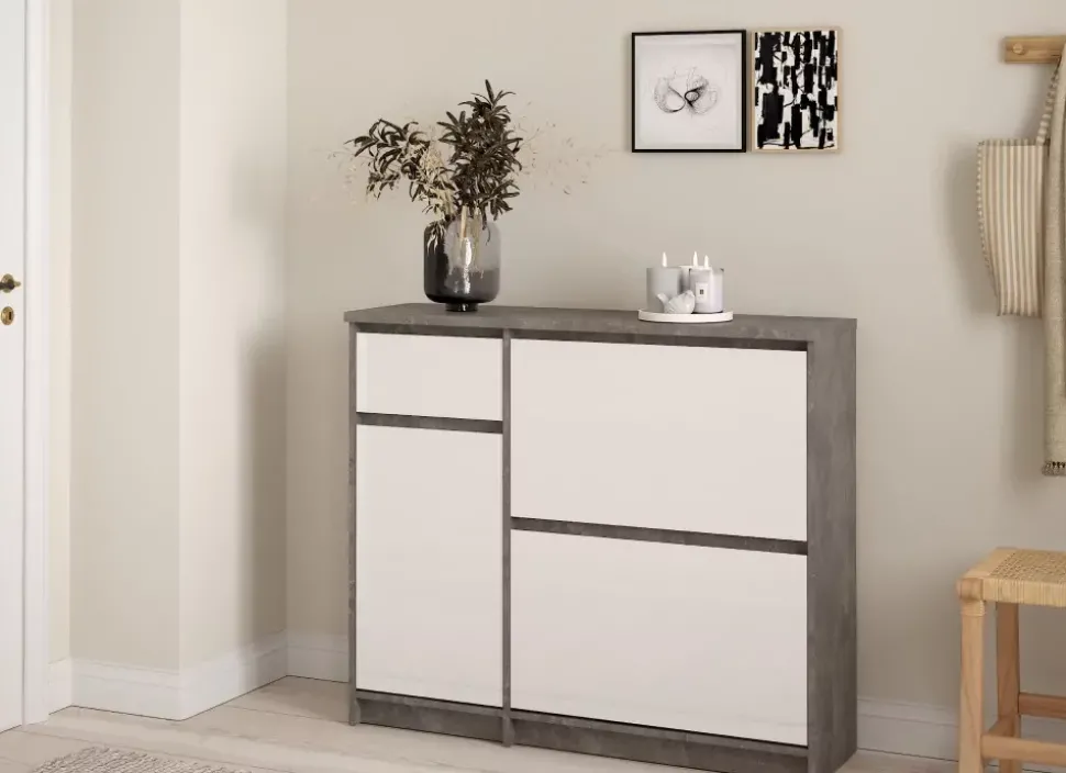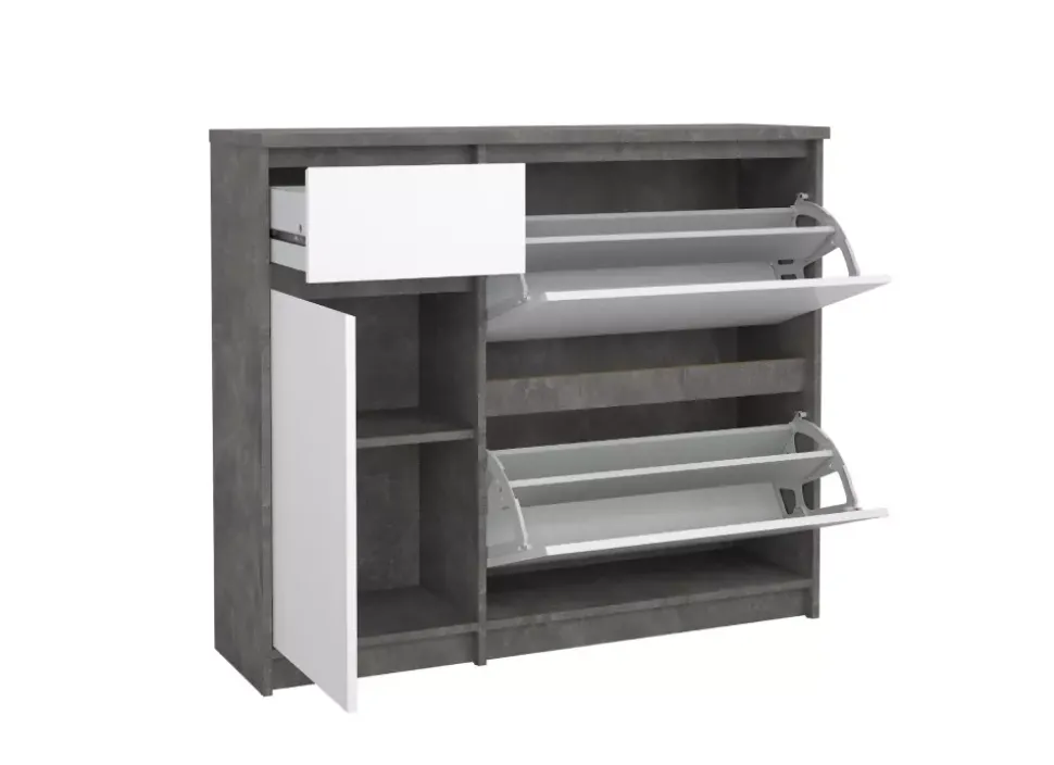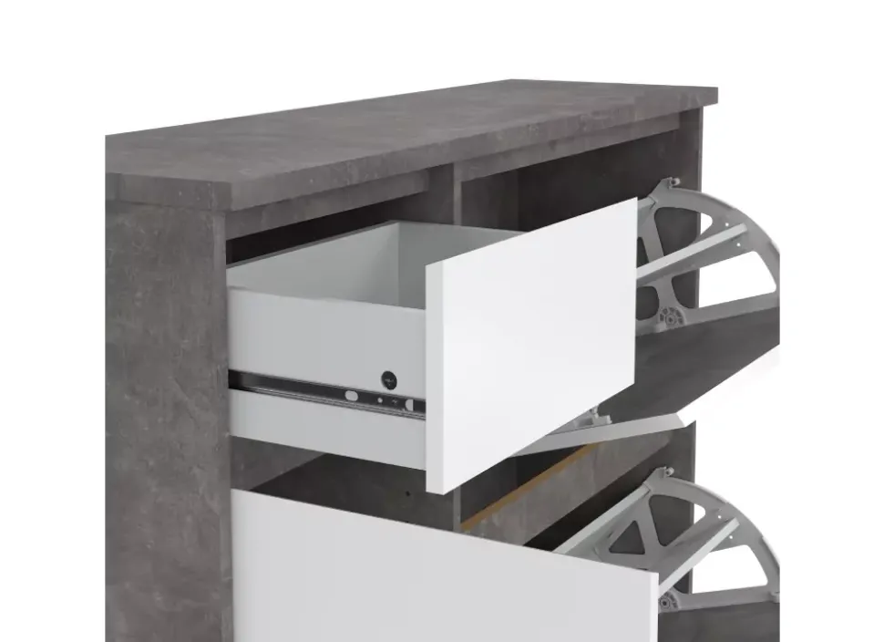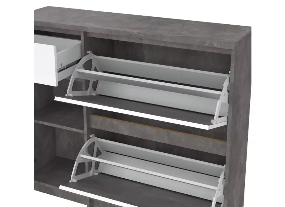 El zapatero ALICIA , destaca por su gran capacidad de almacenaje, ideal tanto para un recibidor como para un dormitorio, su diseño moderno, actual y practico, hace que este zapatero encaje en cualquier ambiente.